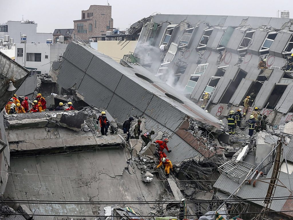 Wie viele Menschen noch unter den Trümmern lagen, war unklar. In Tainan blieben die vielen kleineren Häuser der Zwei-Millionen-Metropole unversehrt, doch wurden mehrere höhere Bauten schwer beschädigt oder stürzten ein. Ein 16-stöckiges Wohngebäude kippte komplett auf die Seite.