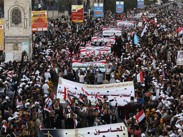 In anderen Städten feierten Tausende den Beginn des Aufstandes gegen Saleh am 11. Februar 2011, ohne dass es zu Gewalt kam. Saleh war im November 2011 gegen die Zusicherung zurückgetreten, dass er keine Strafverfolgung zu befürchten hat.