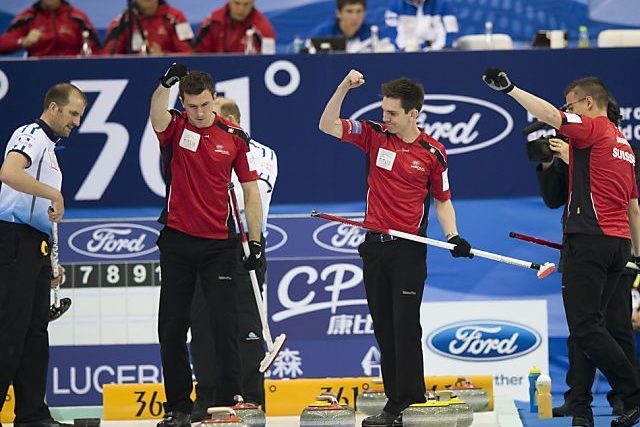 Die WM-Debütanten Valentin Tanner, Dominik Märki, Peter De Cruz und Benoît Schwarz vom CC Genf waren den von Kevin Koe angeführten Kanadiern, den Weltmeistern von 2010, während des ganzen Spiels überlegen. Die Curler aus Edmonton gaben im 10. End auf.