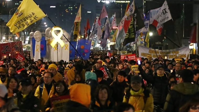 Hunderttausende Südkoreaner hatten am Samstag in Seoul erneut gegen Park demonstriert. Wie schon seit elf Wochen forderten sie die sofortige Amtsenthebung der unter Korruptionsverdacht stehenden Präsidentin. Während der Demokratiebewegung in Südkorea in den späten 80er und frühen 90er Jahren hatten sich immer wieder Aktivisten aus Protest angezündet.