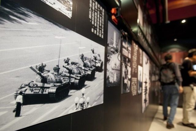 Auf knapp 75 Quadratmetern werden im Museum vor allem Videos und Fotos der damaligen Ereignisse gezeigt, darunter auch die berühmte Aufnahme von einem Mann in weissem Hemd, der sich todesmutig einer Reihe von Panzern entgegenstellt.