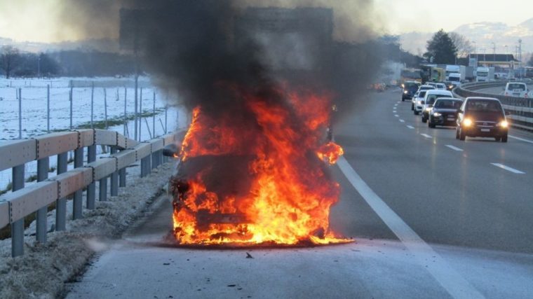Auf der A3 bei Niederurnen GL ist ein Auto nach einem Verkehrsunfall total ausgebrannt. Der Fahrer hatte Glück und blieb unverletzt.