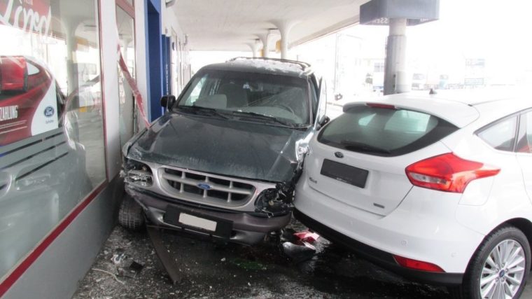 Beim frontalen Zusammenstoss zweier Autos am Montag im glarnerischen Näfels sind beide Fahrzeuge total beschädigt worden. Ebenfalls erheblich beschädigt wurden ein Ausstellungsauto und eine Scheibe. Ein Fahrer erlitt Prellungen.