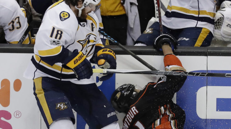 Mit dem 46. Schuss aufs Tor der Anaheim Ducks stellte James Neal nach knapp neuneinhalb Minuten der Overtime den Auswärtssieg der Predators sicher. Nach einem frühen Rückstand hatten Filip Forsberg und Austin Watson bis zum Ende des Mitteldrittels Nashville in dieser ersten Playoff-Halbfinalpartie 2:1 in Führung gebracht. Hampus Lindholm mit seinem ersten Tor in den diesjährigen Playoffs machte jedoch die Verlängerung nötig.