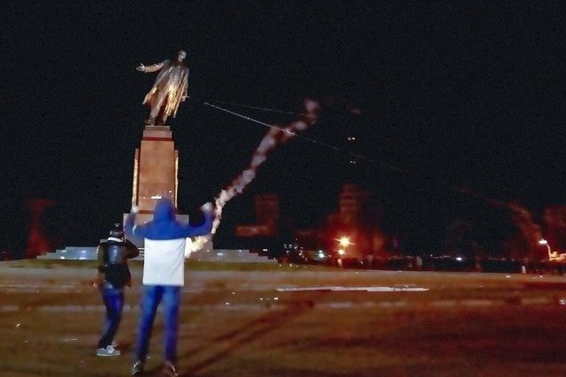 Im Zuge des Konflikts zwischen der Ukraine und dem Nachbarn Russland sind seit dem vergangenen Winter Statuen des Bolschewikenführers im ganzen Land demoliert worden. Die Protestaktionen dienen als Symbol für die Forderung regierungstreuer Kräfte, die ehemalige Sowjetrepublik möge sich stärker der EU zuwenden und ihre Bindungen zu Russland kappen.