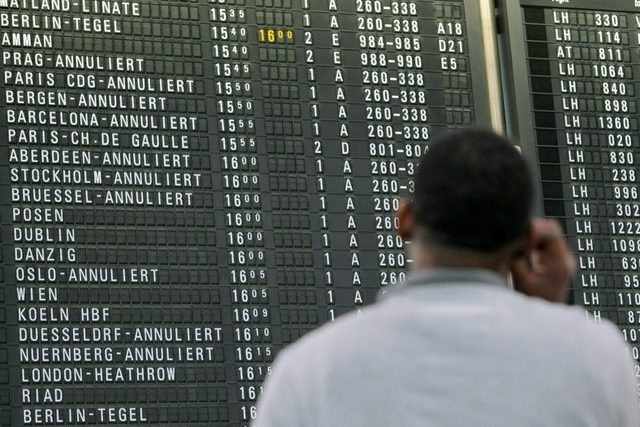 Die Bahn setzt alle zur Verfügung stehenden Züge und an den Bahnhöfen zusätzliche Mitarbeiter ein. Am Dienstag dürfte sich die Situation noch ein wenig entspannen, sagte eine Lufthansa-Sprecherin. Voraussichtlich werden 160 Flüge annulliert.