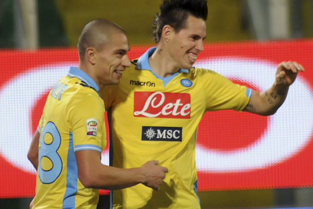 Der SSC Neapel (mit Gökhan Inler und ohne Blerim Dzemaile) wahrte im zweiten Spiel des Abends mit einem furiosen 6:3 gegen Cagliari seine Chance auf die erneute Qualifikation für die Champions League. Marek Hamsik (10.), Paolo Cannavaro (19.) und Davide Astori mit einem Eigentor (30.) stellten schon vor der Pause die Weichen auf Sieg. Ezequiel Lavezzi per Foulelfmeter (56.), Walter Gargano (70.) und Christian Maggio (84.) machten alles klar. Neapel ist nun Vierter. Für Cagliari traf Joaquin Larrivey gleich dreimal.