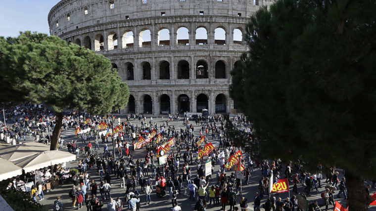 Rund 40’000 Menschen haben sich am Samstagnachmittag in Rom an einem Protest gegen die Regierung von Premier Matteo Renzi beteiligt. Zum «No Renzi»-Tag riefen Linksparteien und linksorientierte Gewerkschaften auf.