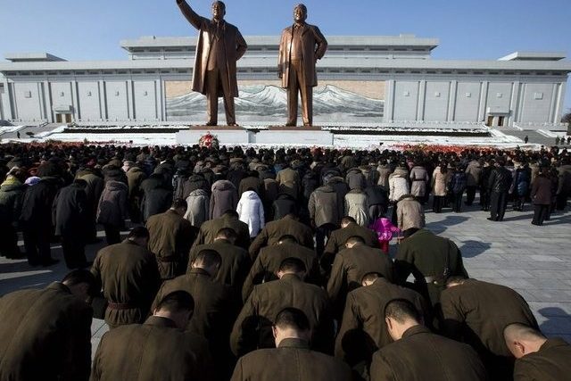 „Unser Volk und das Militär sehnen sich tränenreich nach dem sonnigen Lächeln unseres lieben Vaters“, hiess es im Staatsfernsehen, das die Feierlichkeiten live übertrug. Während der Zeremonie legten die angesichts eisiger Temperaturen in dicke schwarze Mäntel gehüllten Teilnehmer unter anderem drei Schweigeminuten zu Kims Ehren ein.