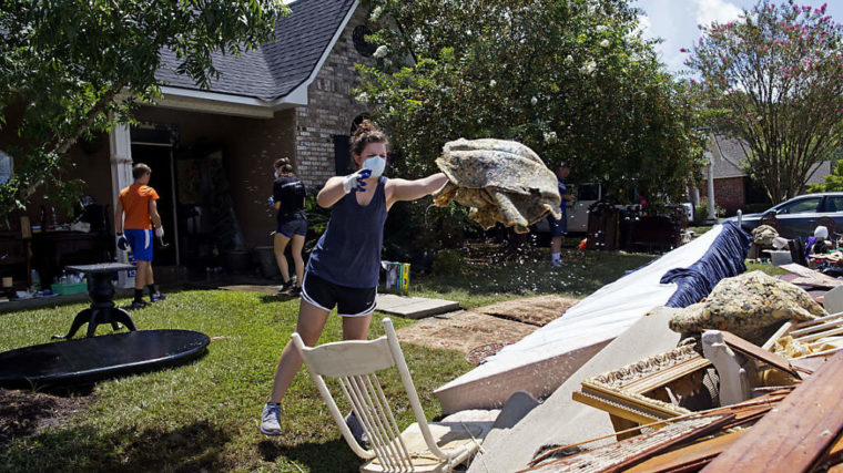 Die Wasserstände im Unwettergebiet um die Stadt Baton Rouge sinken seit Tagen langsam. Aufräumarbeiten sind in vollem Gang.