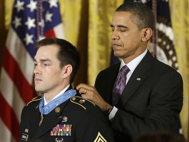 Der ehemalige Armeesoldat und seine 52 Untergebenen wurden im Oktober 2009 auf einem Gefechtsposten im Nordosten Afghanistans von rund 400 Aufständischen angegriffen. Insgesamt acht Amerikaner starben im Gefecht. Romesha selbst wurde verwundet. Er habe zu denjenigen gehört, „die unter Einsatz ihres Lebens und unter unvorstellbaren Bedingungen“ den Posten verteidigt hätten, sagte Obama.
