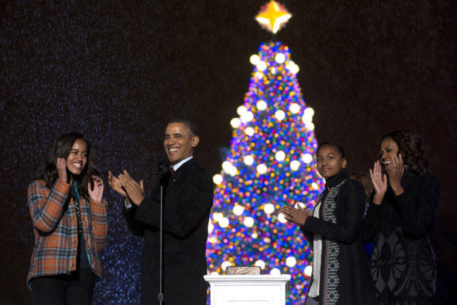 US-Präsident Barack Obama und seine Familie haben offiziell die Weihnachtszeit in den USA eingeläutet. Gemeinsam mit seiner Schwiegermutter Marian Robinson erleuchteten der Präsident und die «First Family» – Obamas Frau Michelle und die Töchter Malia und Sasha – am Freitagabend per Knopfdruck den Nationalen Christbaum.
