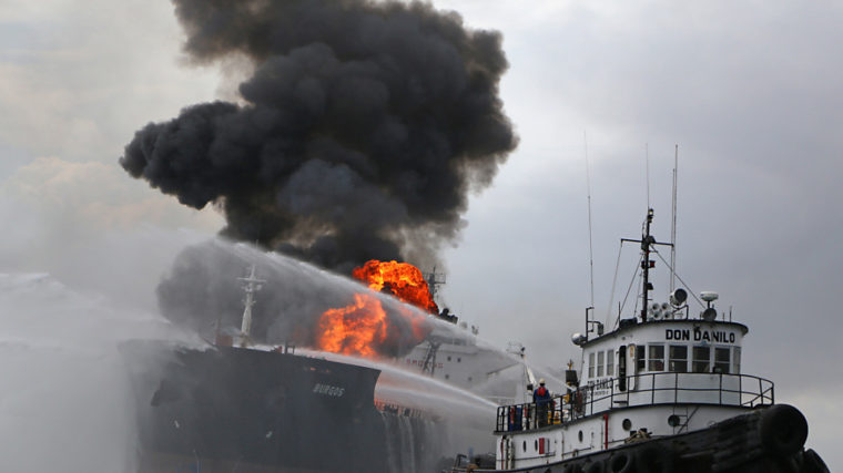 Die Ursachen des Feuers waren zunächst unklar. Örtlichen Medienberichten zufolge hatte es am Vormittag eine Explosion auf dem Schiff gegeben. Der Öltanker hat demnach eine Kapazität von 80’000 Ölbarrels.