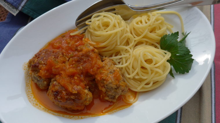 Hackfleischbällchen mit Tomatensauce und Spaghetti