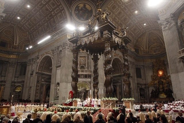 Als zum Ruf „Lumen Christi“ (Licht Christi) auch tausende Gläubige ihre Kerzen entzündeten, wurde die riesige Basilika hell erleuchtet. Das Licht symbolisiert die Auferstehung Christi von den Toten, an die in der spätabendlichen Messe am Ostersamstag erinnert wird. Zehntausende verfolgten die Zeremonie auf grossen Leinwänden auf dem Petersplatz.