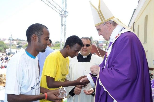Franziskus bat um «Verzeihung» für die Todesopfer. In seiner Predigt von einem aus Rudern gefertigten Pult im kleinen Stadion von Italiens südlichster Insel sagte er zu den 10’000 Anwesenden: «Die Wohlstandskultur macht uns unempfindlich für die Schreie der anderen und führt zur Globalisierung der Gleichgültigkeit.» Das Gefühl der «brüderlichen Verantwortlichkeit» sei verloren gegangen.