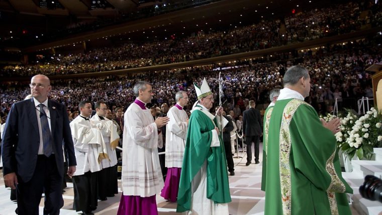 Papst Franziskus hat zum Abschluss seines Besuchs in New York eine Messe vor tausenden Gläubigen gehalten. Rund 20’000 Menschen verfolgten im Madison Square Garden, wo ansonsten Konzerte und Eishockeyspiele stattfinden, die Predigt des katholischen Kirchenoberhaupts.