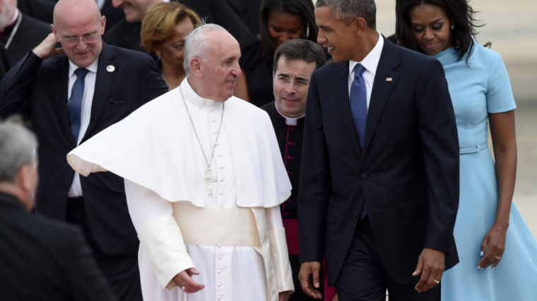 Nach einer viertägigen Reise durch Kuba ist Papst Franziskus am Dienstag in Washington eingetroffen. In einer ungewöhnlichen Geste wurde der Papst von US-Präsident Barack Obama und dessen Frau Michelle sowie von Vizepräsident Joe Biden und dessen Frau begrüsst.