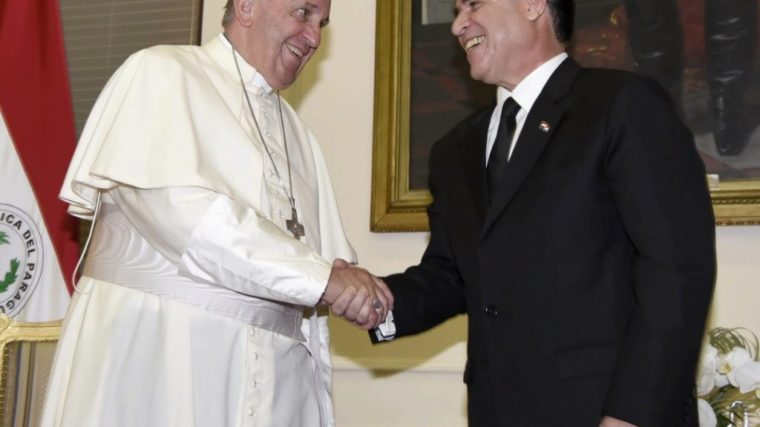 Seit einigen Jahren habe Paraguay ein «solides und stabiles demokratisches Projekt» vorangetrieben, sagte der Papst am Freitagabend bei einem Empfang im Präsidentenpalast in Asunción in Anwesenheit des konservativen Staatschefs Horacio Cartes. In Paraguay herrschte bis 1989 die Diktatur Alfredo Stroessners, bei der nur kontrollierte Wahlen zugelassen waren.