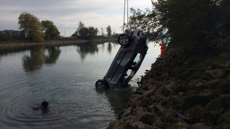 Das Auto wurde im Verlauf des Montags mit einem Kran aus dem Kanal gehoben.
