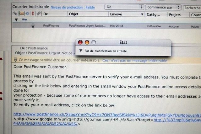 Kunden der Postfinance sind am Montag Opfer einer Phishing-Attacke geworden. Per E-Mail wurden sie aufgefordert, eine neue Sicherheits-Software für den elektronischen Zahlungsverkehr zu installieren.