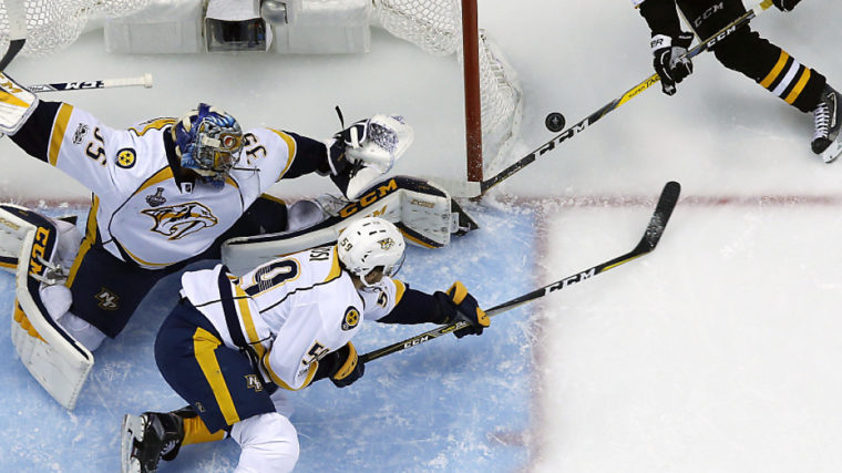 Die Tore vom 1:1 (17.) zum 4:1 (44.) erzielte Pittsburgh innert 198 Sekunden. Das 2:1 schoss Jake Guentzel nach nur zehn Sekunden im letzten Drittel, nachdem Nashvilles Goalie Pekka Rinne einen Schuss von Bryan Rust nach vorne hatte abprallen lassen. In der Folge bauten Scott Wilson und Jewgeni Malkin den Vorsprung innert 15 Sekunden auf drei Tore aus. Beim 1:3 bekundete Nashville grosses Pech, lenkte doch der zurückgeeilte Vernon Fiddler den Puck mit dem Schlittschuh ins eigene Tor. Auch vor dem 1:4 liessen die Gäste eine 1:2-Situation zu. Der Berner Verteidiger Roman Josi warf sich zwar wie Yannick Weber zuvor beim 1:3 zu Boden, dennoch traf Malkin.