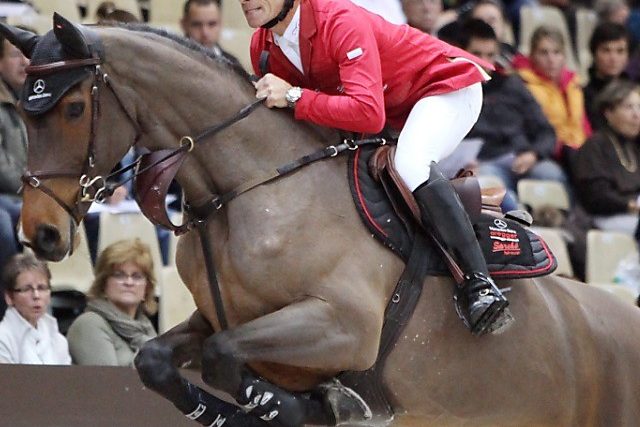Mit einem beherzten Ritt im Stechen führt Pius Schwizer am CSI Neuendorf das Nachwuchspferd Coolgirl zum Sieg im Grossen Preis.