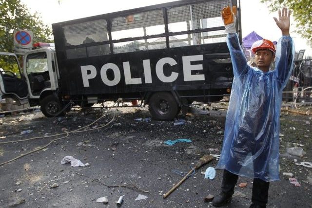 Vor einem neuen Ansturm wütender Demonstranten hat die Polizei in Thailand ihre Taktik geändert: an der Polizeizentrale in Bangkok, die die Regierungsgegner stürmen wollten, bauten sie am Dienstag nach Berichten von Fotografen vor Ort die Barrieren ab.