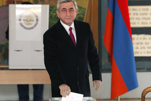 Bei der Präsidentenwahl in der Südkaukasusrepublik Armenien hat der prorussische Amtsinhaber Sersch Sargsjan nach einer Prognose klar gewonnen. Der 58-Jährige erhielt laut einer Nachwahlbefragung 58 Prozent der Stimmen.