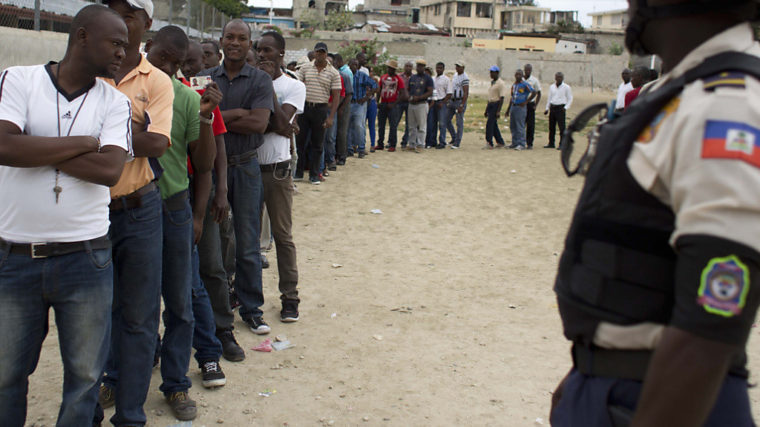 Landesweit waren am Sonntag 9400 Polizisten im Einsatz, um für einen geordneten Ablauf des Urnengangs zu sorgen. Hinzu kamen 1400 Polizisten der UNO-Mission in Haiti. Autos dürfen sich Wahllokalen nur bis zu einem Abstand von 100 Metern nähern. Die Parlamentswahl von August 2015 war von Ausschreitungen überschattet gewesen, die Ergebnisse eines Viertels der Wahlbezirke wurde annulliert.