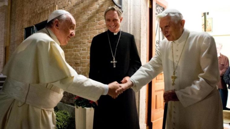 Franziskus würdigte seinen 2013 zurückgetretenen Vorgänger: «Sie, Heiligkeit, dienen weiter der Kirche, werden nicht müde, mit Kraft und Weisheit zu ihrem Wachstum beizutragen.» Aus dem Kloster Mater Ecclesiae im Vatikan, wo Benedikt seither lebt, ströme eine Ruhe, ein Frieden und eine Kraft, «die mir gut tun und Kraft geben – mir und der gesamten Kirche», sagte Franziskus.