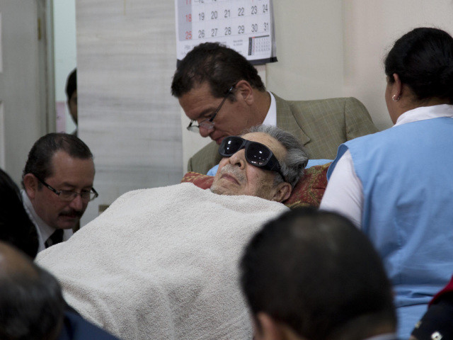 Der frühere Diktator leidet nach Angaben seiner Anwälte unter Rückenproblemen sowie unter Herzbeschwerden und einem Augenleiden. Mit Sonnenbrille und eingehüllt in eine beigefarbene Decke wurde er auf einer Bahre ins Gericht getragen.