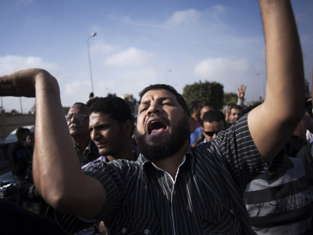 Trotz dem Grossaufgebot der Sicherheitskräfte demonstrierten vor der Polizeiakademie in Kairo Hunderte Gefolgsleute Mursis. Auf einem Transparent war zu lesen: «Der Wille des Volks wurde vergewaltigt».