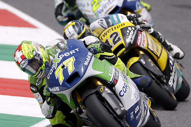 Dominique Aegerter fuhr auf seiner Suter auf Rang acht, nur 0,581 Sekunden hinter der Bestzeit. Der 22-jährige Oberaargauer, in der WM-Wertung auf Rang 5, war in dieser Saison nur in den zwei ersten GPs in Katar und Austin jeweils als Fünfter nach dem Qualifying besser klassiert. Sein Teamkollege Randy Krummenacher, am Freitag noch zweimal gestürzt, kam auf den guten 13. Rang und war in dieser Saison gar nur einmal besser klassiert (5. beim GP von Katalonien).