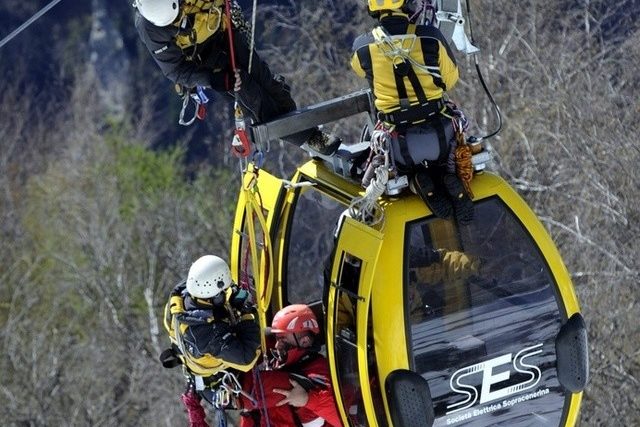 Die Schweizerische Rettungsflugwacht führt diese Woche bei der Seilbahn auf den Monte Comino im Centovalli Evakuierungsübungen durch. Geprobt wird, wie aus einer stehengebliebenen Seilbahnkabine mittels Helikopter Leute herausgeholt werden können.