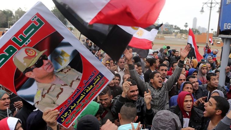 Am fünften Jahrestag der arabischen Aufständen in Ägypten haben auf dem Tahrir-Platz in Kairo nur die Unterstützer der autoritären Regierung demonstriert. Im Stadtzentrum versammelten sich, begleitet von einem Grossaufgebot von Einsatzkräften, Hunderte Menschen mit Bildern oder Pullovern mit dem Konterfei von Staatspräsident Abdel Fattah al-Sisi. Pro-Regime-Sprechchöre hallten über den Platz.