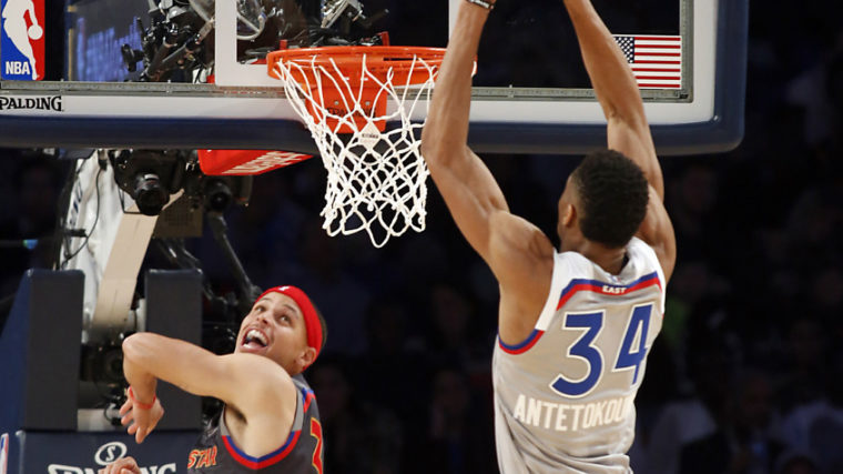 Dem 22-jährigen Griechen Giannis Antetokounmpo gelangen für den Osten fast soviele Dunks (12) wie sein Name Buchstaben hat (13).