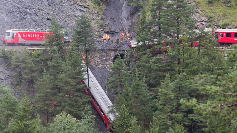 Am 13. August 2014 war zwischen Tiefencastel und Thusis ein Personenzug der Rhätischen Bahn von einem Erdrutsch getroffen worden und entgleist. Einer der sieben Wagen stürzte 20 Meter den Steilhang hinunter, wurde aber von Bäumen gestoppt. Von 150 Reisenden verletzten sich acht schwer und ebenso viele leicht. Eine Person erlag den Verletzungen neun Tage nach dem Unglück.