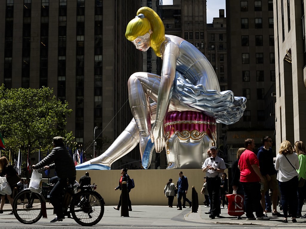 Der Meister des Kitsch, Jeff Koons, hat am Freitag in New York sein neues Kunstwerk enthüllt: eine aufblasbare Ballerina. Bis zum 2. Juni dominiert die 14 Meter hohe Tänzerin den Platz vor dem Rockefeller Center, auf dem Koons schon zwei Mal Werke präsentieren durfte.