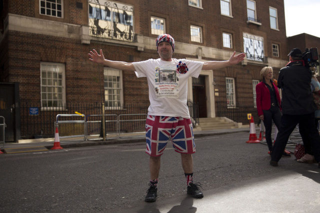Immer mehr Royal-Fans versammeln sich zur Geburt von Kates zweitem Baby vor dem St. Mary’s-Spital in London. Viele Fans haben sich in die britischen Farben blau, weiss und rot gehüllt.