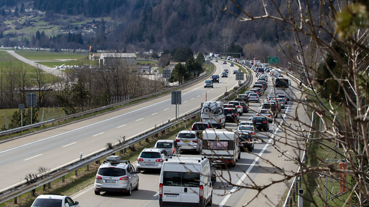 Auch in Richtung Süden war der Andrang am Ostermontag grösser als üblich: Vor dem Gotthardportal bei Göschenen UR standen die Fahrzeuge am Nachmittag auf fünf Kilometern. Die Wartezeit betrug 50 Minuten.