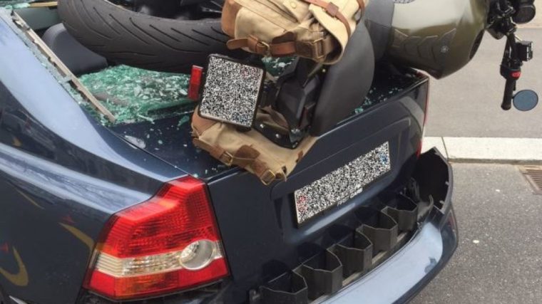 Den Einsatzkräften bot sich ein nicht alltägliches Unfallbild, wie die Stadtpolizei in einer Mitteilung schreibt. Beim Zusammenprall landete das Motorrad auf dem Stufenheck des Autos. Der Motorradfahrer wurde auf die Strasse geschleudert und blieb mit mittelschweren Verletzungen liegen.