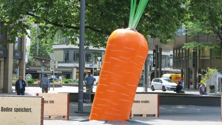 Sind die Bodenfunktionen einmal zerstört, dauert die Regeneration Jahrhunderte bis Jahrtausende, wie es in einer Mitteilung des Bundes heisst. Auf diesen Aspekt zielt auch das Riesenrüebli auf dem Bundesplatz ab. Auf einem einmal asphaltierten Boden würde es Jahrtausende dauern, bis dieser wieder ausreichend fruchtbar ist und uns mit vitaminreichen Rüebli versorgen kann.