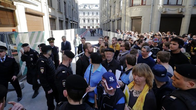 Eine Eskalation bei einer Kundgebung am 26. März hatte internationale Kritik ausgelöst. Damals hatte der Oppositionelle Alexej Nawalny zu Protesten wegen Korruptionsvorwürfen gegen Regierungschef Dmitri Medwedew aufgerufen. Mehr als 1000 Menschen wurden dabei festgenommen, auch Nawalny, der 2018 kandidieren will.