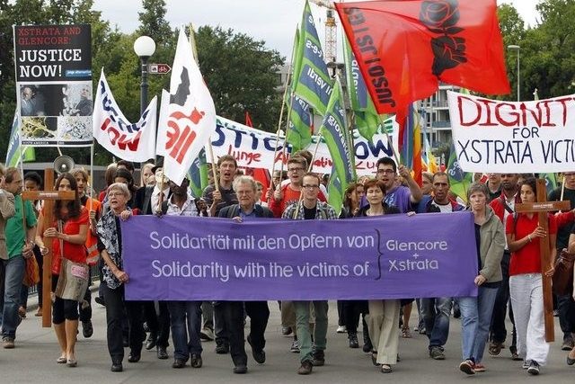 Rund 300 Personen haben am Mittwochabend bei einer genehmigten Demonstration in Zug gegen die Zuger Unternehmen Xstrata und Glencore demonstriert. Bei der anschliessenden Kundgebung riefen verschiedene Redner zur Solidarität mit den Opfern der Rohstoffmultis auf.