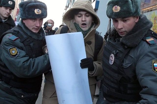 Die Oppositionsführer Alexej Nawalni, Sergej Udalzow and Ilja Jaschin, die mit Schildern gegen „Folter und Unterdrückung“ protestiert hatten, und weitere Aktivisten wurden bei der Demonstration am Samstag im Zentrum Moskaus festgenommen.