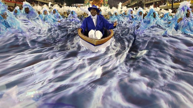 Thema des Aufzugs von 3400 Tänzern war das Flussleben Brasiliens. Grösstenteils blau und weiss gekleidet stellten die Sambatänzer von Portela die Fische der brasilianischen Flüsse dar.