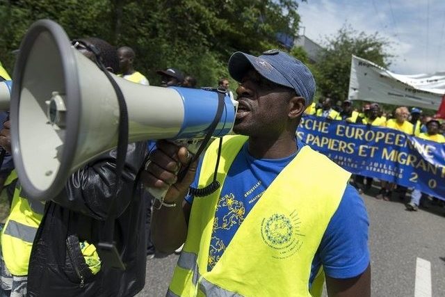 Die Internationale Koalition der Sans-Papiers und der MigrantInnen (IKSM) hat den Marsch von der europäischen Hauptstadt zum Sitz des Europaparlamentes und des Menschenrechts-Gerichtshofs organisert. An diversen Stationen unterwegs thematisieren sie mit lokalen Happenings negative Folgen der Migrationspolitik für Betroffene.