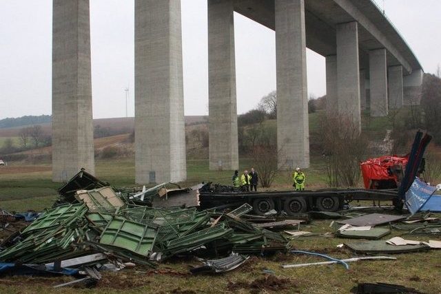 Aus zunächst ungeklärter Ursache hatte der Fahrer auf der Brücke bei Tauberbischofsheim die Kontrolle über sein Fahrzeug verloren. Der Sattelzug durchbrach den Angaben zufolge Leitplanke und Brückengeländer und stürzte in die Tiefe.