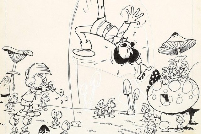 Die Zeichnung von der Hand des Schlumpf-Erfinders Peyo war wichtigstes Stück einer Auktion der Werke von Peyo durch das französische Auktionshaus Artcurial. Das Album aus der Serie Johan und Pirlouit war im Jahr 1960 im Verlag Dupuis erschienen, zwei Jahre nach der Geburt der blauen Gnome.